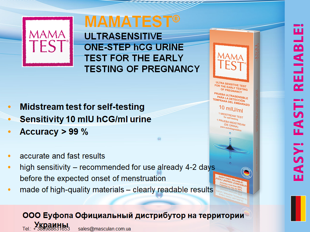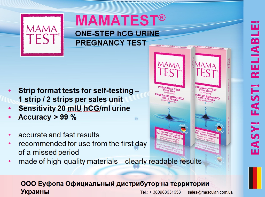 Pregnancy Midstream Test MAMATEST® and Pregnancy Test Strips MAMATEST® and MAMACHECK®