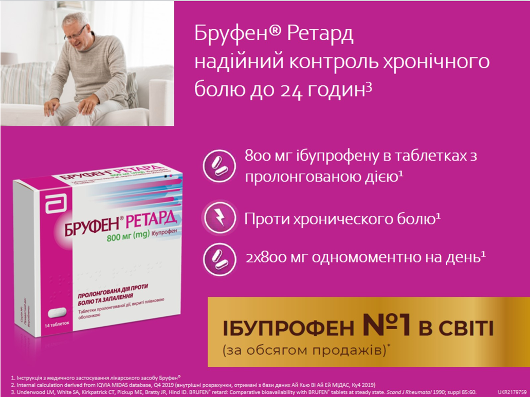 ЕДО ТОВ Вента.ЛТД*Абботт Продактс Оперейшнз АГ*НОВИНКИ Бруфен Рапид 400мг №10,Бруфен Ретард 800мг №14