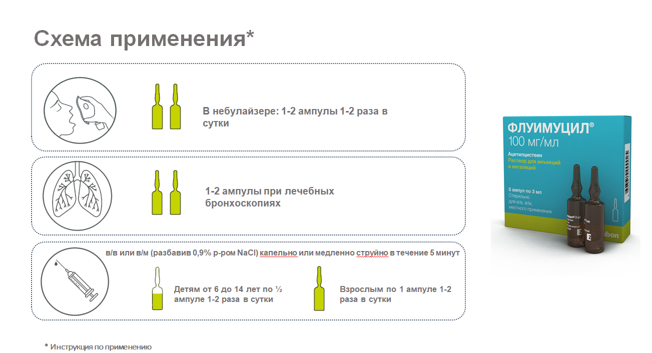 Флуимуцил® раствор для инъекций и ингаляций (МНН Ацетилцистеин)