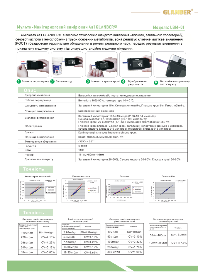Комплектация глюкометр 4в1 GLANBER: