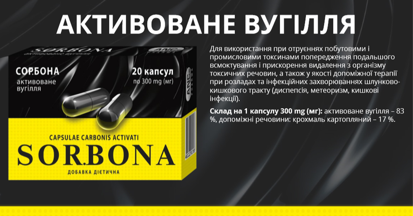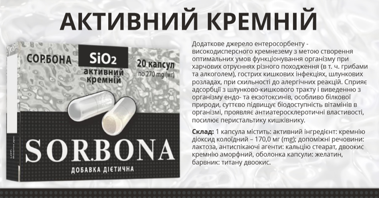 ЕДО ТОВ Вента.ЛТДSOR.BONА актив.уголь Надежное средство от отравления и актив.кремний Доп.источник энтеросорбента нов.поколения